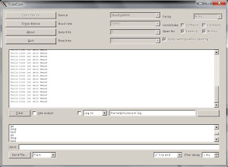 Schauen wir uns nun an ob alles funktioniert. Wir öffnen "Cutecom" und schauen ob wir die Zeichen die wir senden auch wieder vernünftig empfangen. Dazu einfach wie in der Asuro Anleitung beschrieben ein weißes Blatt mit etwas Abstand über das RS232 Modul halten. Sollte Cutecom bei euch noch nicht installiert sein so könnt ihr dies einfach mit